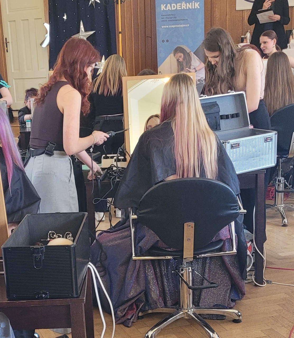 Dne 23. 4. jsme se zúčastnili kadeřnicko-kosmetické soutěže v Prostějově, která se nesla v originálním tématu „Noční svět“. Naši žáci zde předvedli svou kreativitu, zručnost i cit pro detail při tvorbě účesů inspirovaných noční atmosférou.